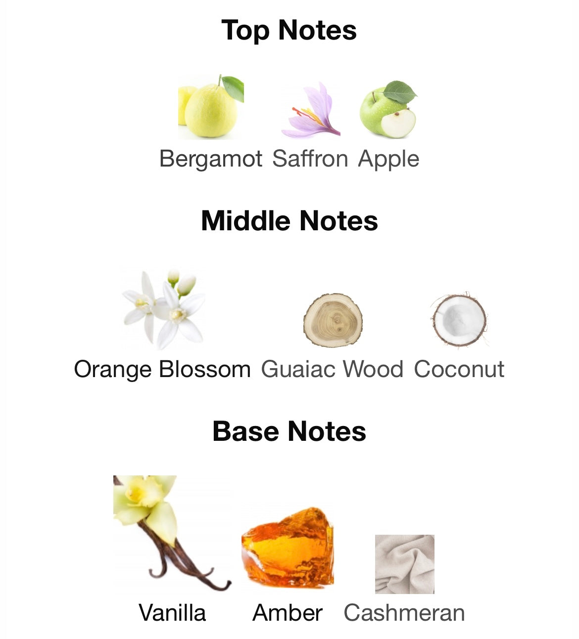 A creamy-sweet oriental fragrance blending crisp apple and saffron with tropical coconut and orange blossom, anchored by warm vanilla, amber, and cashmeran. Released in 2024, this unisex scent features above-average longevity and projection.